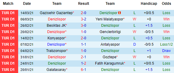 + Thống kê 10 trận gần nhất của Denizlispor