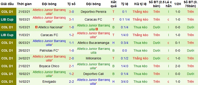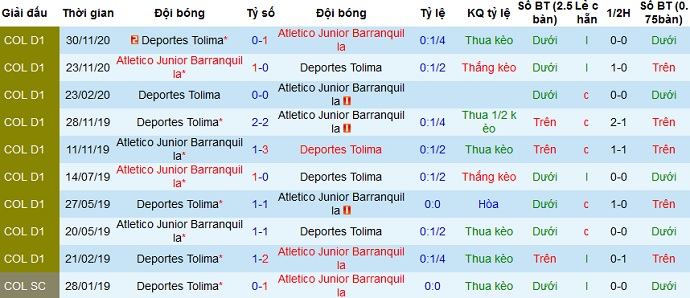 Tuy ở cả 4 lần chạm trán gần nhất Deportes Tolima chưa từng giành chiến thắng trước đối thủ nhưng phong độ sân nhà của đội bóng hiện đang rất tốt. Trái lại thành tích du đấu của Junior Barranquilla lại khá kém cỏi nên có lẽ chọn cửa trên ở trận đấu này vẫn có phần hợp lý.