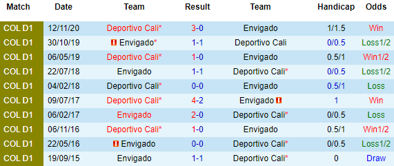 Deportivo Cali là cái tên lâu đời và giàu truyền thống ở Colombia. Họ đã từng 9 lần giành chức vô địch quốc gia, lần gần nhất là ngôi vương giai đoạn Apertura năm 2015. Nếu như Deportivo Cali có tuổi đời hơn 100 năm thì Envigado mới được thành lập năm 1989 và cũng chưa có danh hiệu gì đáng kể.