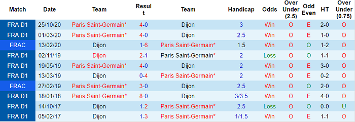 Hai lần so tài gần nhất với PSG thuộc khuôn khổ Ligue 1, Dijon đều phải nhận thất bại với tỷ số 0-4. Thật khó để Dijon tránh khỏi kết cục khác ngoài việc tiếp tục ‘ôm hận’ trước PSG vào thứ Bảy (27/2).
