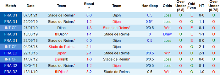 Phong độ và thống kê đối đầu Dijon vs Reims