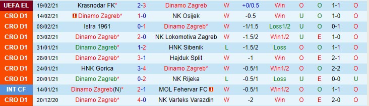 + Thống kê 10 trận gần nhất của Dinamo Zagreb