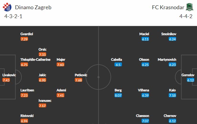 Đội hình dự kiến Dinamo Zagreb vs Krasnodar: