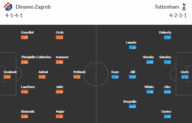 Đội hình dự kiến Dinamo Zagreb vs Tottenham