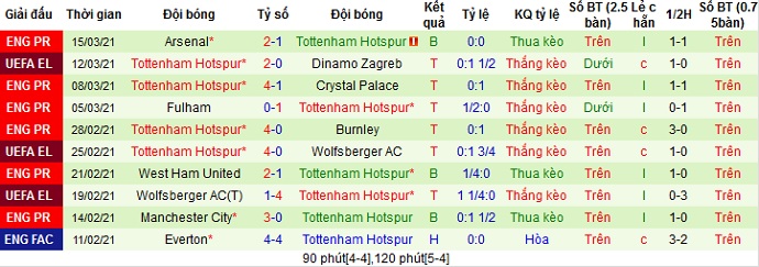 + Thống kê 10 trận gần nhất của Tottenham