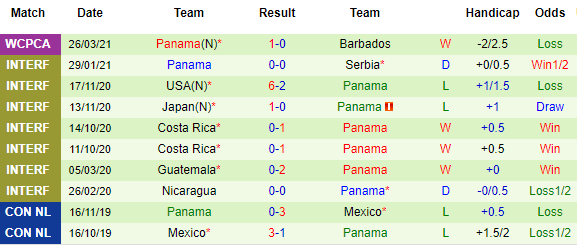 + Thống kê 10 trận gần nhất của Panama