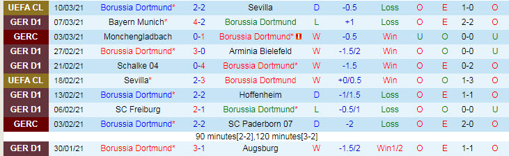 + Thống kê 10 trận gần nhất của Dortmund