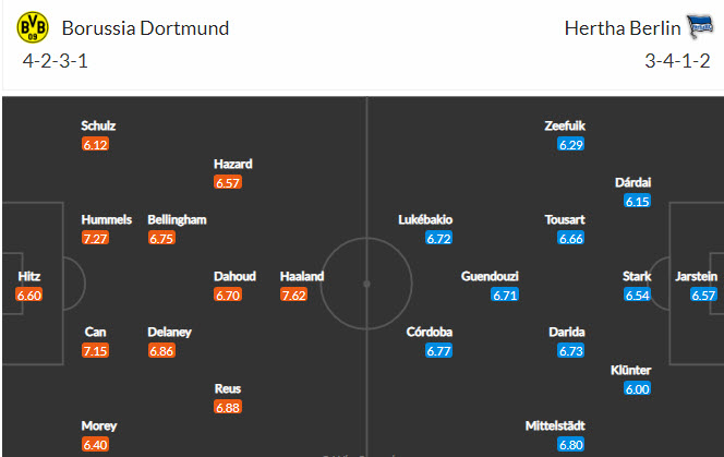 Đội hình dự kiến Dortmund vs Hertha BSC: