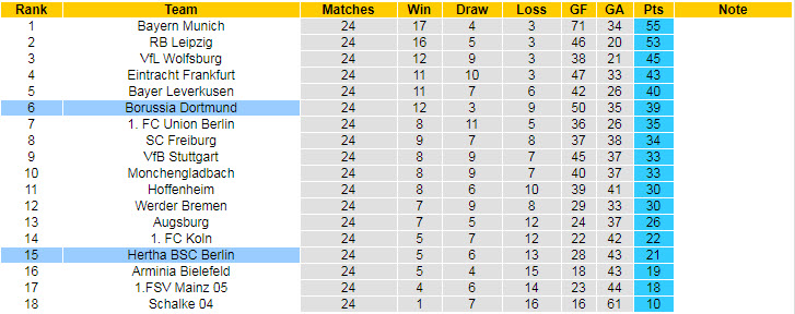 Công tâm, ngoài trận thua trên sân của Bayern Munich, Dortmund thi đấu tốt khi thắng với các tỷ số cách biệt 3-0 trước Bielefeld và thắng 4-0 ở trận derby vùng Ruhr trước Schalke. Với phong độ hiện tại, NHM không quá bất ngờ nếu Dortmund sẽ đánh bại Hertha BSC ở trận đấu đêm nay.