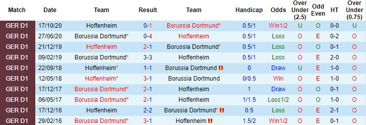 Bên phía đối diện, Hoffenheim tạo nên sự tin tưởng với thành tích bất bại 7 trên 11 trận sân khách gần đây. Thành tích đối đầu của Hoffenheim trước Dortmund cũng rất ấn tượng. 6 lần chạm trán Dortmund từ năm 2018, Dortmund bất bại 5 lần với 3 chiến thắng và 2 trận hoà.