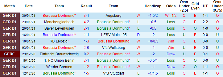 Paderborn cầm hòa Dortmund với tỷ số 1-1 ở trận giao hữu hồi tháng 8/2020. Lần gần nhất làm khách gần nhất đến sân của Dortmund, Paderborn cũng khiến đối thủ phải chia điểm với tỷ số 3-3. Lần tái đấu sắp tới, Dortmund tiếp tục được dự đoán sẽ gặp nhiều khó khăn trước đội bóng hạng 2. Lý do là bởi giai đoạn gần đây Dortmund không có phong độ tốt.