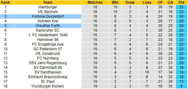 Nếu nhìn vào tên tuổi của đôi bên, NHM hẳn cảm thấy quen thuộc hơn với Dusseldorf bởi CLB này từng chơi tại Bundesliga ở mùa giải năm ngoái. Đến thời điểm hiện tại của mùa này, Dusseldorf vẫn còn nguyên hy vọng giành vé trở lại với đấu trường số 1 nước Đức.