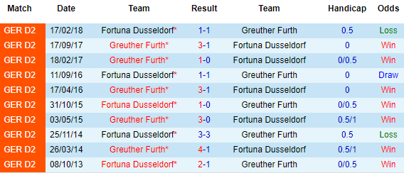+ Lịch sử đối đầu Dusseldorf vs Greuther Furth