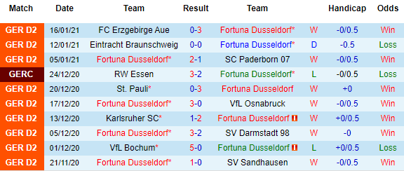 + Thống kê 10 trận gần nhất của Dusseldorf