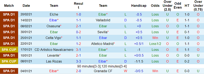 - Thống kê 10 trận gần nhất của Eibar
