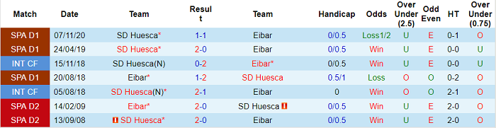 Phong độ và thống kê đối đầu Eibar vs Huesca