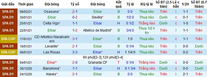+ Thống kê 10 trận gần nhất của Eibar