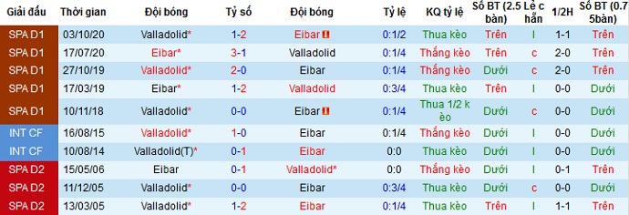 + Lịch sử đối đầu Eibar vs Valladolid