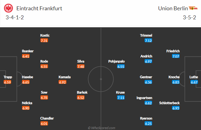 Trên sân khách, Union Berlin thi đấu không tốt, 5 trận xa nhà vừa qua họ thua 3, hòa 1. Hơn thế, đội khách ở thời điểm hiện tại đang gặp khó khăn về lực lượng vì 4 trụ cột Niko Giesselmann, Sheraldo Becker, Anthony Ujah và Taiwo Awoniyi dính chấn thương. Bên kia chiến tuyến, Eintracht Frankfurt có màn thể hiện tốt với 5 chiến thắng và 1 trận hòa ở 6 trận gần đây trên sân nhà.