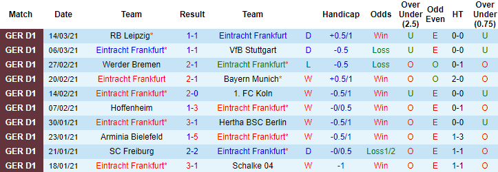 + Thống kê 10 trận gần nhất của Eintracht Frankfurt