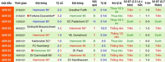Trái lại Hannover vẫn đang thi đấu khá ổn định khi có được 2 trận thắng, 2 trận hòa và 1 trận thua ở 5 trận gần nhất. Ngay cả trên sân khách Hannover cũng có được 3 trận thắng, để thua 2 trận ở 5 lần du đấu gần nhất.