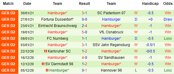 + Thống kê 10 trận gần nhất của Hamburger