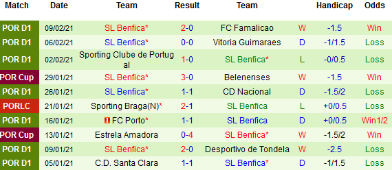 + Thống kê 10 trận gần nhất của Benfica