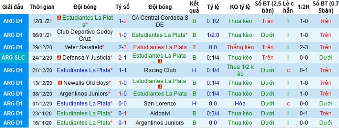 + Thống kê 10 trận gần nhất của Estudiantes