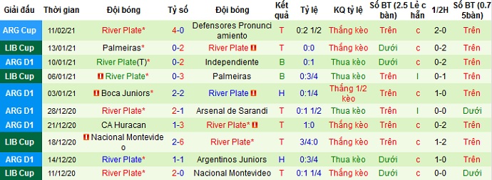 + Thống kê 10 trận gần nhất của River Plate