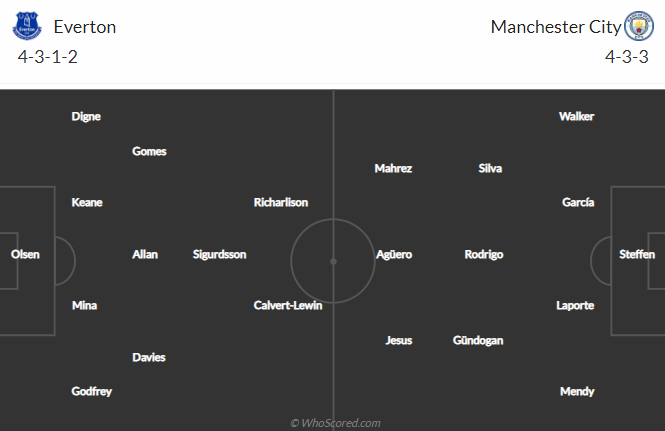 Đội hình dự kiến Everton vs Man City