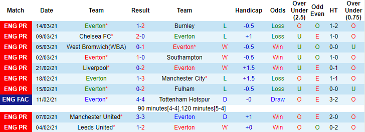+ Thống kê 10 trận gần nhất của Everton