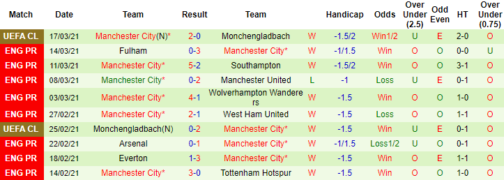 + Thống kê 10 trận gần nhất của Man City