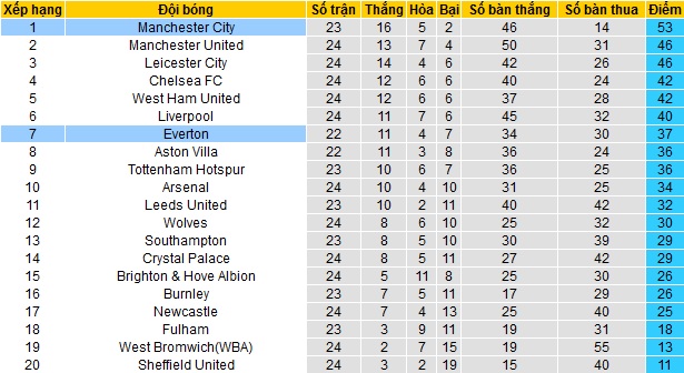 Trận đấu bù vòng 16 của giải ngoại hạng Anh sẽ là cuộc đọ sức giữa Everton và Man City. Với việc thi đấu khá thất thường kể từ cuối tháng 1 đến nay, Everton đã rơi xuống vị trí thứ 7 trên bảng xếp hạng khi có được 37 điểm sau 22 vòng đấu. Tuy kém các đội trong Top 4 tới 5 điểm nhưng Everton đang thi đấu ít hơn 2 trận.