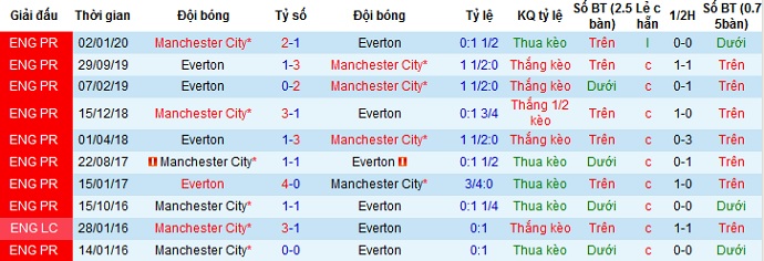 + Lịch sử đối đầu Everton vs Man City