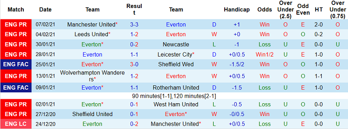 - Thống kê 10 trận gần nhất của Everton