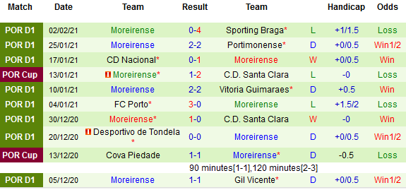 + Soi tỷ lệ kèo châu Á: Theo ghi nhận trên sàn giao dịch châu Á, Famalicao đều giành chiến thắng khi liên quan đế tỷ lệ 1/2 trong 2 trận gần đây. Trong khi đó, Moreirense đều không ghi được bàn thắng ở 2 trong 3 trận sân khách vừa qua.