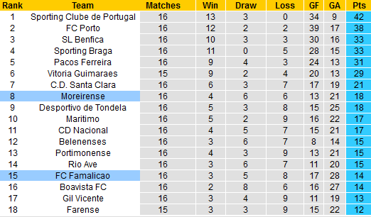 Không có gì nổi bật ấn tượng khi nhìn vào thành tích từ đầu mùa của Famalicao. Đội chủ nhà chỉ đứng thứ 15 trong danh sách 18 CLB tham dự giải hạng cao nhất của bóng đá Bồ Đào Nha.