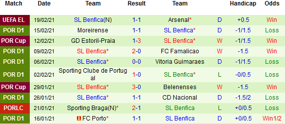 + Thống kê 10 trận gần nhất của Benfica