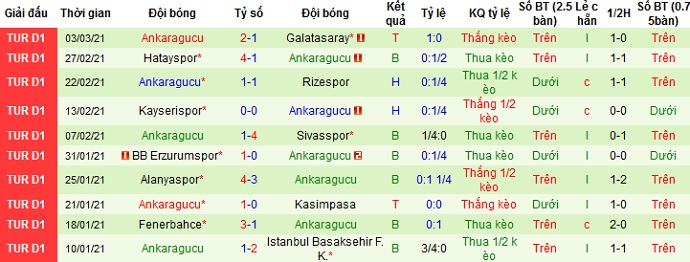 + Thống kê 10 trận gần nhất của Ankaragücü