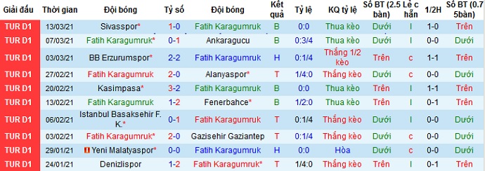 + Thống kê 10 trận gần nhất của Fatih Karagümrük