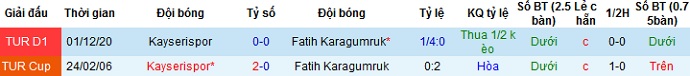 + Lịch sử đối đầu Fatih Karagümrük vs Kayserispor