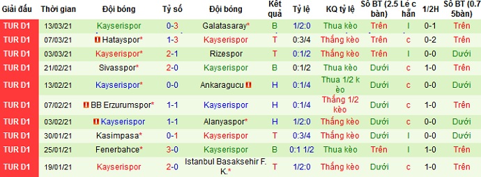 + Thống kê 10 trận gần nhất của Kayserispor