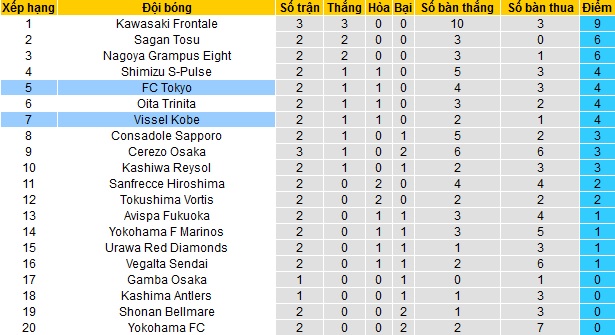 Trong khi đó Vissel Kobe mùa giải trước cũng chỉ cán đích ở vị trí thứ 14 tại J-League. Hiện tại Vissel Kobe đang đứng ở vị trí thứ 7 trên bảng xếp hạng khi cũng có được 4 điểm sau 2 vòng đấu đầu tiên.