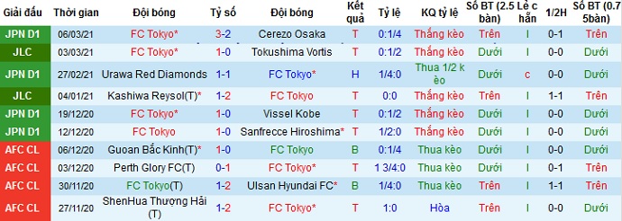 + Thống kê 10 trận gần nhất của FC Tokyo