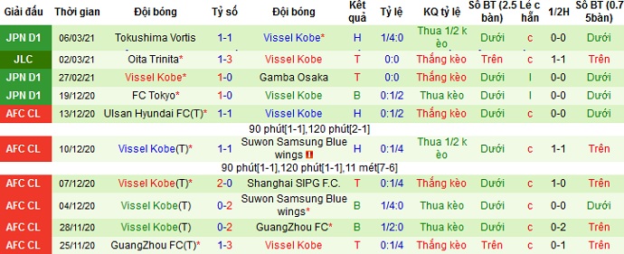+ Thống kê 10 trận gần nhất của Vissel Kobe