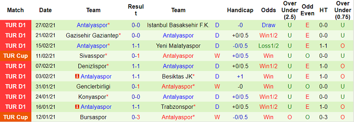 9 trận gần nhất của Antalyaspor thuộc khuôn khổ giải VĐQG Thổ Nhĩ Kỳ đều không chứng kiến quá 2 bàn thắng. Kịch bản tương tự hứa hẹn tái diễn vào thứ Năm (4/3).