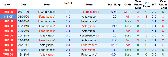 Tỷ lệ kèo Fenerbahce vs Antalyaspor