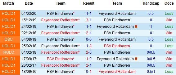 + Lịch sử đối đầu Feyenoord vs PSV Eindhoven