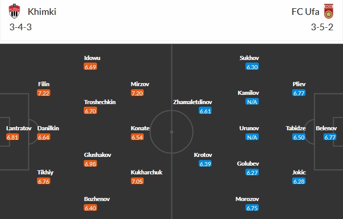 Đội hình dự kiến FK Khimki vs FK Ufa