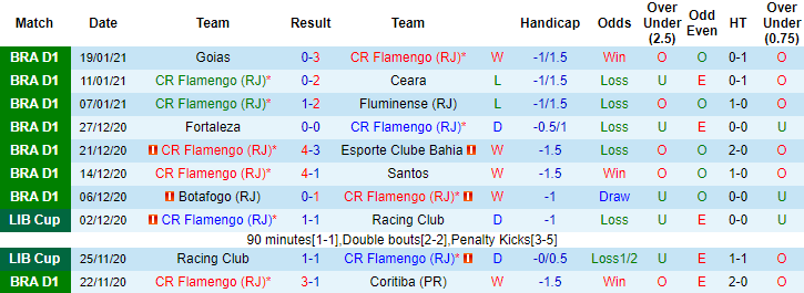 + Thống kê 10 trận gần nhất của Flamengo